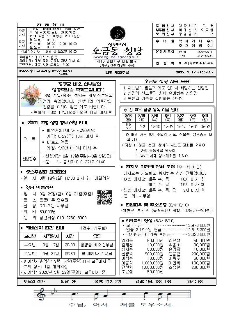 | 글쓴이 : 오금동성당 | 날짜 : 2025-08-14 17:08:16 |